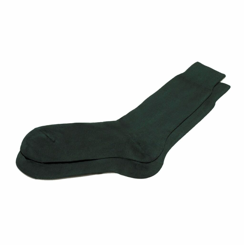 Media fina lisa de vestir, media caña, 75% algodón, 25% poliamida con puños con elastano. Puntera y talón demarcados, una basta en cada lateral. Color verde.